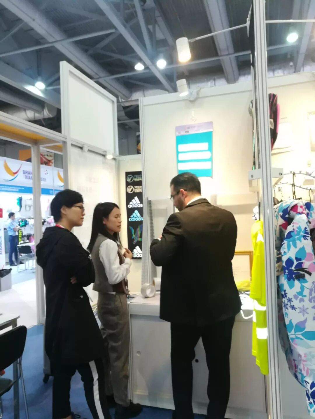 我們鉞科勤勞的小伙伴們,為了將款式多樣的產品和樣衣能在展會中脫穎而出,早早的前來布置展臺呢!![]()