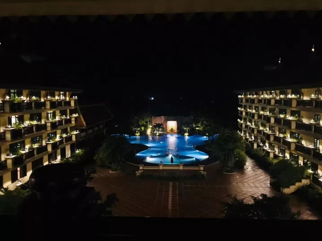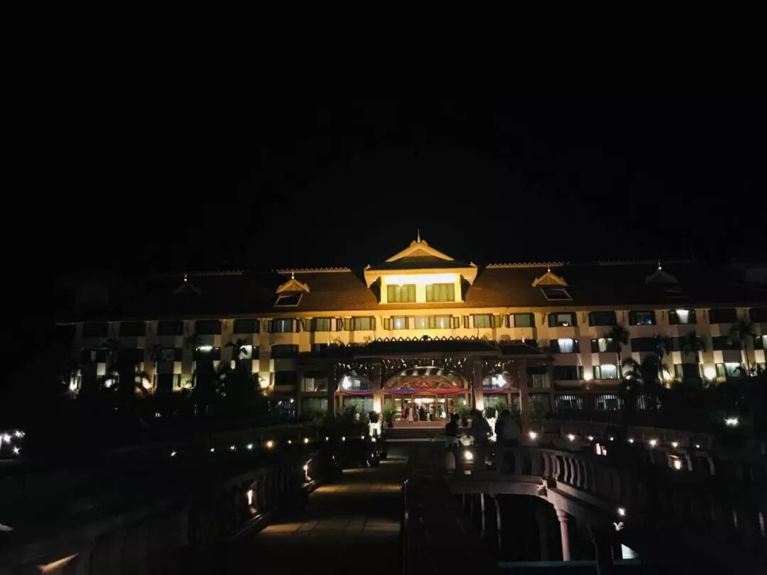 夜色將黑色的幃幕徐徐降下,這里瞬間亮起了一片燈海,雖然柬埔寨的電要從泰國引進,各處灰暗,唯獨這里燈火通明,柬式建筑的屋頂被燈光勾勒出帶有鳳嘴的挑腳,店招的燈光于水中的倒影,遙相呼應,與閃動的水波,構成了一幅軸對稱的動態畫面。